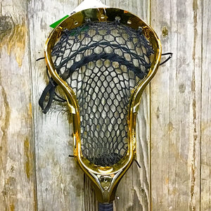 Lacrosse Fanatic custom strung this Chrome Gold Adrenaline Automatic Mens Lacrosse Head with black Hero 4 mesh and black strings. It features our signature Mikie Schlosser (PLL Waterdogs) designed pocket. It's stylish and game ready out of the gate. Just throw it on your favorite shaft and go make plays.