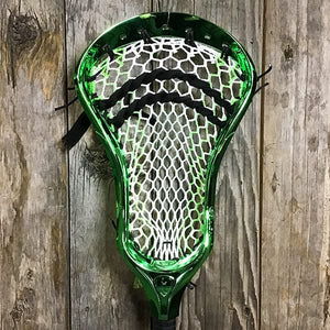 Lacrosse Fanatic custom strung this Chrome Green Adrenaline Nomad Mens Lacrosse Head with neon green striker Hero 4 mesh and black strings. It features our signature Mikie Schlosser (PLL Waterdogs) designed pocket. It's stylish and game ready out of the gate. Just throw it on your favorite shaft and go make plays.