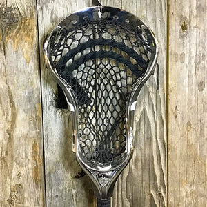 Lacrosse Fanatic custom strung this Chrome Silver Adrenaline Automatic Mens Lacrosse Head with black Hero 4 mesh and black strings. It features our signature Mikie Schlosser (PLL Waterdogs) designed pocket. It's stylish and game ready out of the gate. Just throw it on your favorite shaft and go make plays.