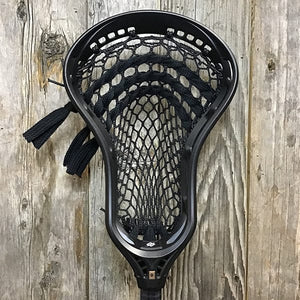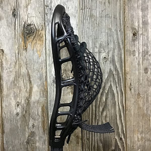 Lacrosse Fanatic custom strung this black StringKing Mark 3V Men's Lacrosse Head with black Type 5s mesh and black strings. It features a replica of Brennan O'Neill's (PLL Denver Outlaws) pocket. Brennan’s pocket is built for versatility. It shifts between low, mid, and high placement, giving players dynamic hold and ball control high in the channel. With a high-feel release and just the right amount of whip, this pocket delivers precision and power.