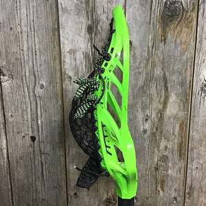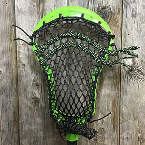 Lacrosse Fanatic custom strung this Green Adrenaline Nomad Mens Lacrosse Head with black hero mesh, and black sidewall and neon green/black fireworks lace shooters. It features our signature Mikie Schlosser (PLL Waterdogs) designed pocket. It's stylish and game ready out of the gate. Just throw it on your favorite shaft and go make plays.