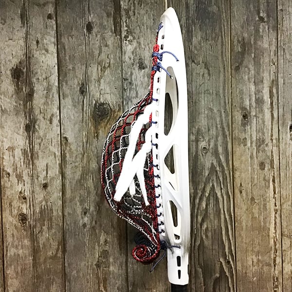 Lacrosse Fanatic custom strung this White ECD Impact Lacrosse Goalie Head with USA Goalie Mesh, navy sidewall and white shooters It features signature custom pocket, designed by Mikie Schlosser (PLL Waterdogs). It's game ready out of the gate. Just throw it on your favorite shaft and go make saves.
